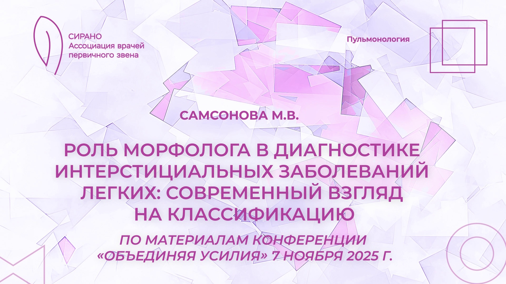 28.03.26 16:30 Роль морфолога в диагностике интерстициальных заболеваний легких