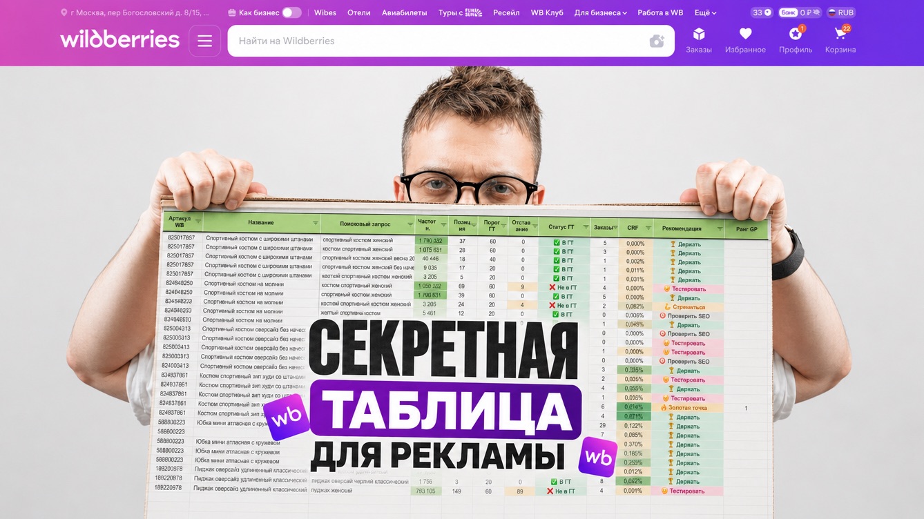 🤝 Реклама под ключ: https://t.me/apekinski 📲 Tаблица в тг: https://t.me/ecomercer 📲 Таблица в макс: https://max.ru/id860408070893_biz WeChat China (我们很快就会添加它) В этом видео разбираю инструмент, который я использую в агентстве Pekinski.ru для анализа рекламных кластеров в рекламе на Wildberries — таблицу распределения по Границе Трафика. 📊 Что такое Граница Трафика (ГТ)? Это позиция в выдаче, при которой ключевой запрос реально приносит трафик на карточку. В товарке — топ-10/20/40 в зависимости от частотности. В одежде пороги выше, потому что покупатели скроллят глубже. 🔥 Что умеет таблица: — Автоматически определяет статус каждого ключа: в ГТ или нет — Считает CRF (конверсию из показа в заказ) по каждому запросу — Показывает количество заказов по ключу — Выдаёт рекомендацию: держать / золотая точка / стремиться / не стремиться / проверить SEO — Режим Товарка / Одежда — пороги переключаются в один клик — ТОП-10 золотых точек прямо на дашборде — видно сразу, куда лить бюджет ТАЙМКОД: 0:00 Реклама на вайлдберриз 0:57 – Что такое ГТ 4:38 – Настраиваем таблицу 📥 Как пользоваться: Скачай отчёт в ЛК WB → Аналитика → Товары в поиске → вставь в таблицу → получи готовый анализ. 👉 Ссылка на таблицу в закреплённом комментарии Подписывайся на канал — разбираю рекламу на WB без воды: стратегии, аналитику, реальные кейсы клиентов агентства #wildberries #рекламаWB #продвижениеWB #аналитикаWB #маркетплейс #селлерWB