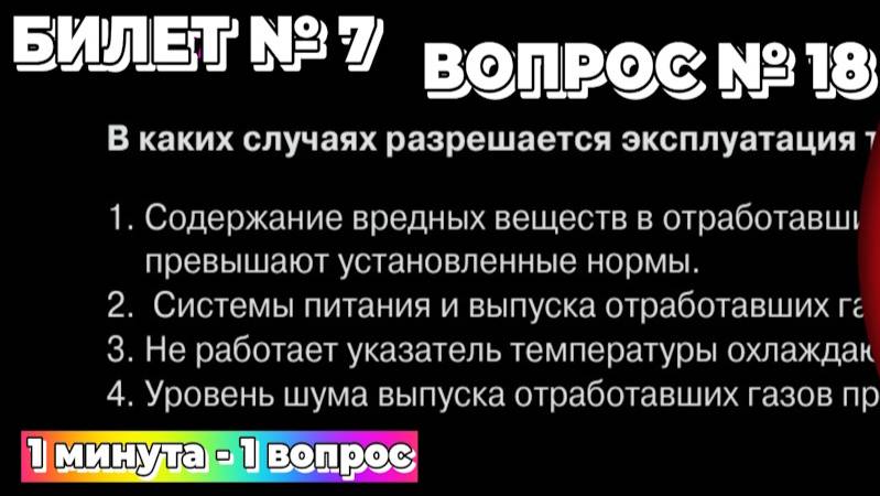 Билет № 7. Вопрос № 18. В каких случаях разрешается эксплуатация транспортного средства? Решаем вопрос № 18 ПДД онлайн экзаменационного билета ГАИ № 7. ___________________________________________ 🔥 Вы можете поддержать канал по ссылке: https://clck.ru/3FeMWH ___________________________________________ ✅ ДАНЕТПДД в социальных сетях: YouTube: https://youtube.com/@danetpdd Rutube: https://rutube.ru/channel/51400104/ VK Видео: https://vkvideo.ru/@club228759945 ВКонтакте: https://vk.com/danetpdd Телеграм: https://t.me/danetpdd ___________________________________________ ✅ Подписывайтесь также на наши каналы: https://t.me/avtoposidelki (АВТО ПОСИДЕЛКИ) https://t.me/viutenok (УТЁНОК) https://t.me/avtogaishnik (АВТО ГАИШНИК)