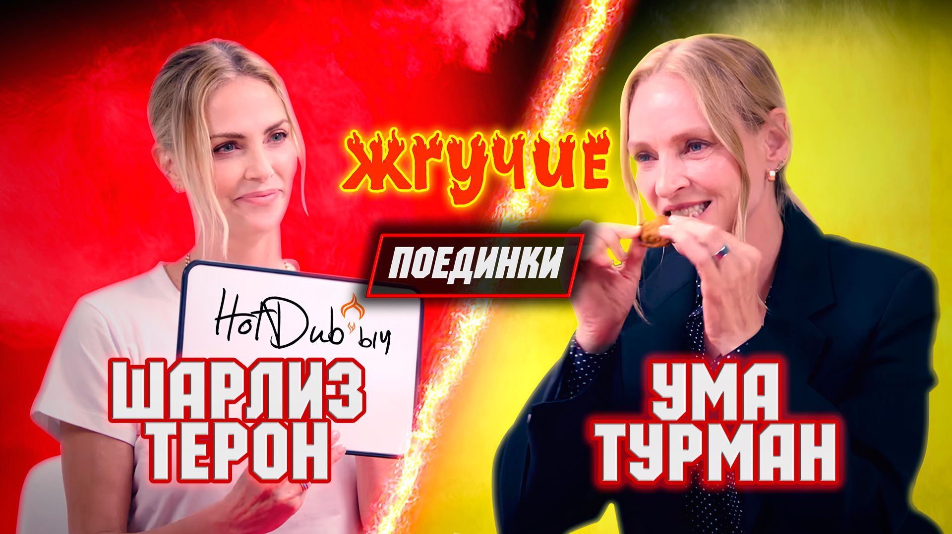 Две королевы экрана, Шарлиз Терон и Ума Турман, сошлись в эпической битве не на жизнь, а на съедение! Кто сломался первым? Кто проявил несгибаемую волю? Кто признался в самых потаенных грехах под воздействием капсаицина?🔥 Переведено и озвучено студией HotDub’ыч🔥 Друзья, подписывайтесь на наши социальные сети: ВК - https://vk.com/hotdubych Telegram - https://t.me/HotDubych