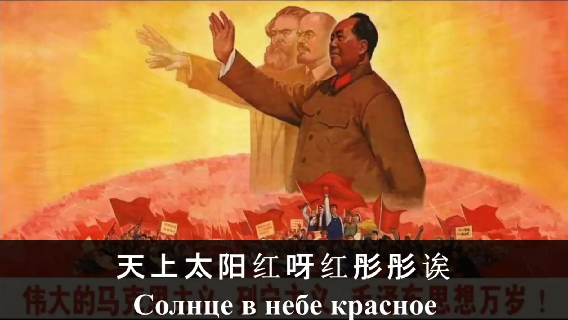 На русском песня о Мао Цзэдуне «Red Sun in the Sky» (Красное солнце в небе) с русскими субтитрами