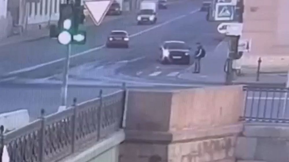 Момент падения авто в Обводной канал в Петербурге