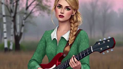 Анимационное видео: Девушка с гитарой на поле. Музыка, песни