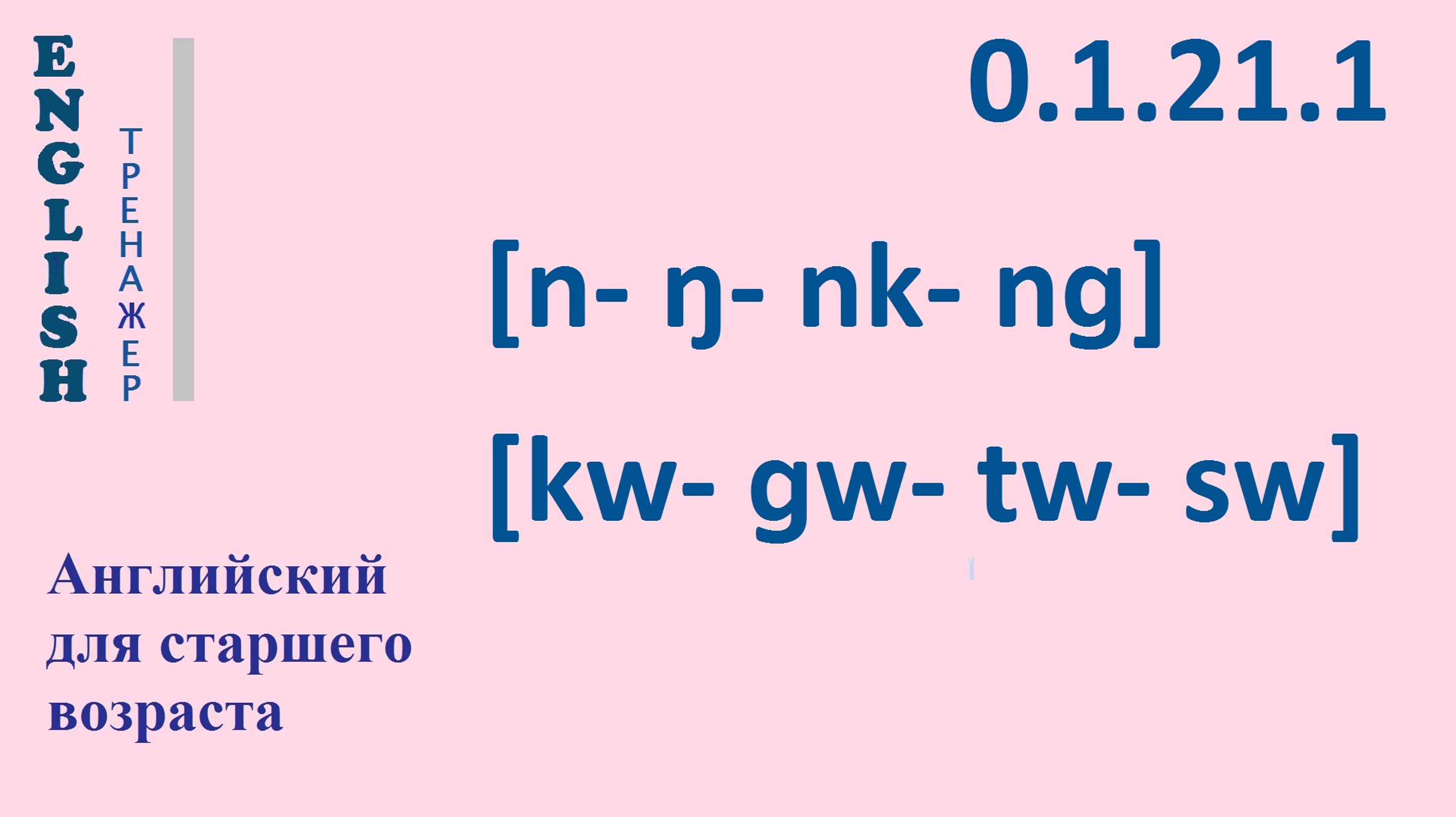 Английский ТРЕНАЖЕР 0.1.21.1 Фонетические упражнения на фонемы [n - ŋ - nk - nɡ], [kw-ɡw-tw-sw]