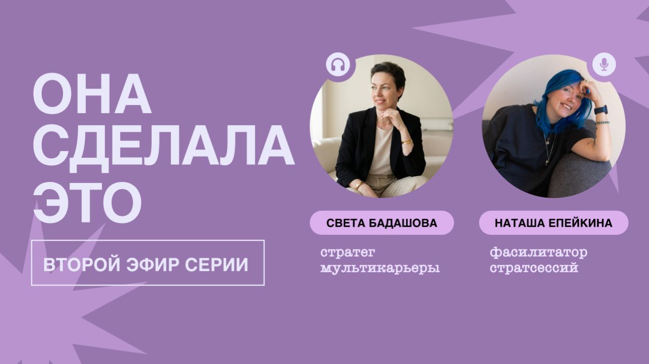 Подкаст «Она сделала это» - это честный и душевный подкаст про женщин, чьи необычные карьерные истории вдохновляют выбирать себя и двигаться вперед несмотря на страхи и сомнения. - В этом подкасте мы с моей гостьей Наташей Епейкиной говорим без глянца и розовых очков: - как строить карьеру в ИТ, если ты не «айтишник с детства» - как найти себя в 35+, когда «вроде уже поздно, но внутри жмёт» - как переехать из маленького города в Москву, выдержать этот темп, а потом уехать за границу - как уйти из найма в свой бизнес и не сгореть - и как вообще успевать работать, жить и растить детей, а не выживать Света Бадашова - стратег мультикарьеры для руководителей и экспертов, ментор Women in Tech, фасилитатор #IAmRemarkable от Google - https://t.me/+nKO6_9qyHvY1NjZi Наташа Епейкина - сертифицированный фасилитатор, тренер, соавтор курса для скрам-мастеров в Нетология - https://t.me/+kqjZieoyOfMyOTNi Навигация 00:00:00 Вступление 00:00:14 Кто такая Наташа Епейкина? 00:01:36 «Докарьерный» период 00:12:19 Предложение о работе в отдел поддержки МТС 00:14:23 А куда дальше? 00:17:28 Что было для тебя Академия лидерства? 00:19:04 Было ли тебе страшно? 00:21:04 Что внутри тебя щелкнуло, когда ментор рассказал вам про эту возможность? 00:22:08 Карьера не строится в момент, когда «просто повезло» 00:22:52 Переезд и новая роль 00:38:31 Как ты поняла, что ты не в своей роли и тебе надо в скрам-мастера? 00:40:51 Тебе не было страшно перечеркнуть предыдущий опыт и кинуться в новое? 00:43:38 Дальше был Гринатом 00:51:55 Когда ты перешла в Райф насколько реальность совпала с ожиданиями? 00:55:18 Что стало основной причиной твоего выгорания? 00:59:33 Додо 01:03:56 Что было особенного в этой работе, чем это отличалось от предыдущего опыта? 01:10:51 Я ушла в mindbox - топ 1 работотаделей 01:16:40 Еще со времен Гранатом я начала качать публичность 01:19:19 Стратсессии появились в параллель с наймом 01:22:55 Ушла в агентство по фасилитации 01:23:23 В чем, как ты думаешь, основное отличие найма, в котором ты работала от работы на себя? 01:26:35 Кем ты себя называешь и считаешь сейчас - ты предприниматель, фасилитатор, эксперт? 01:27:28 Как ты думаешь, какие навыки, скиллы и качества ты из корпораций ты забрала и какие из них помогают тебе в своем начинающемся бизнесе? 01:28:18 Что ты чувствовала, когда ушла из корпораций и стала Наташей, которая ведет стратсесии? 01:29:25 Что было самым страшным для тебя вне корпораций? 01:33:00 Итоги нашего разговора