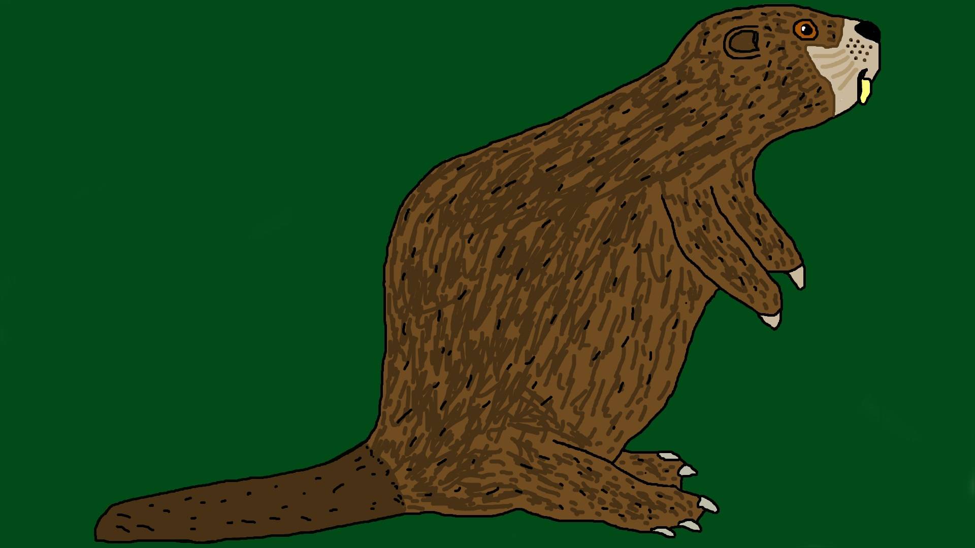 Анимационный персонаж: Бобр на зелёном фоне