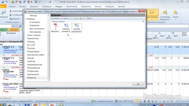 Вложения файлов в смету. Обзор функционала ПК Гранд смета
