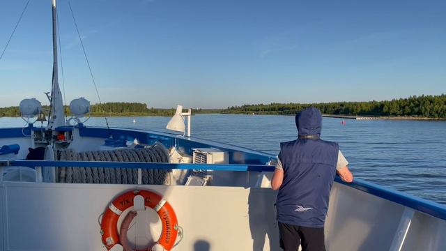 Теплоход А.С.Пушкин заходит в Волго-Балтийский канал из Онежского озера