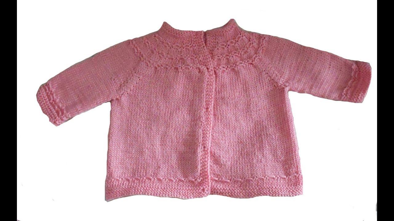 ЖАКЕТ ДЛЯ МЛАДЕНЦА с круглой кокеткой сверху спицами #ЛюдмилаТен