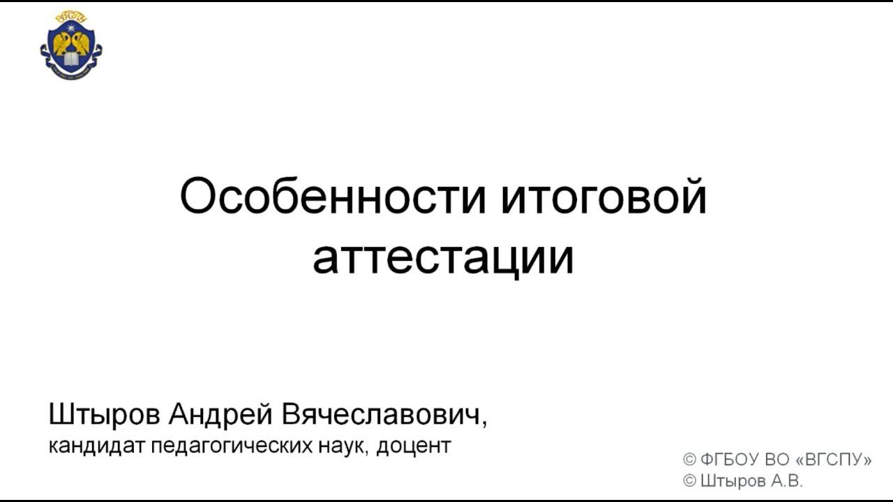 Особенности итоговой аттестации