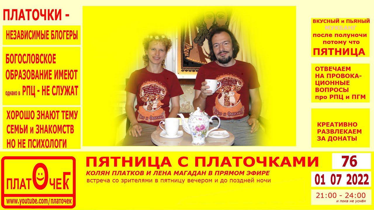 Говорим обо всём, расслабляемся, выполняем прикольные задания от зрителей за донат, отвечаем на провокационные вопросы про РПЦ и ПГМ (частное мнение светских людей с Богословским образованием) по теме "церковь и общество", "религия" и "религиозные заморочки". Весело проводим пятничный вечер. #Пятница #ЗадатьВопрос #ВечерПятницы #Развлекаемся #НочнойЭфир Донат: https://donationalerts.com/r/platochekg Наш ВК: https://vk.com/kolyanplatkov Дзен: https://zen.yandex.ru/platochek Твич: https://www.twitch.tv/platocheg Трово: https://trovo.live/platocheg Остальные: https://taplink.cc/platochegk