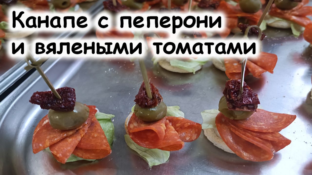 Канапе с пепперони и вялеными томатами