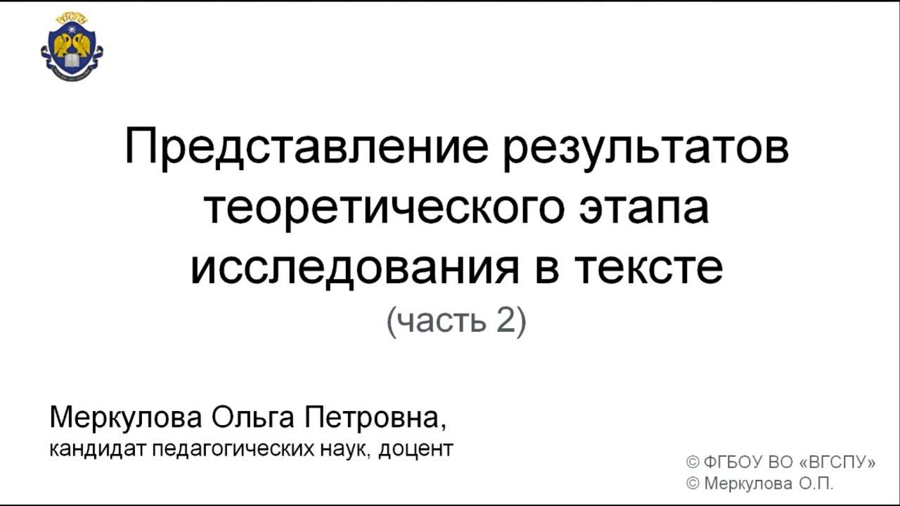Представление результатов теоретического этапа исследования (2 часть)