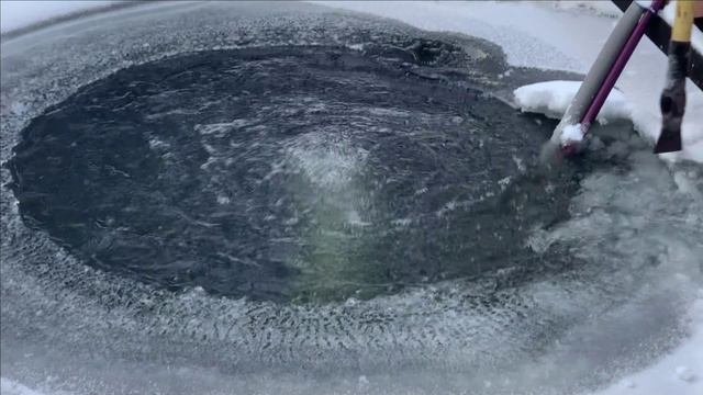 Очистка проруби в пруду зимой.Обслуживание пруда.