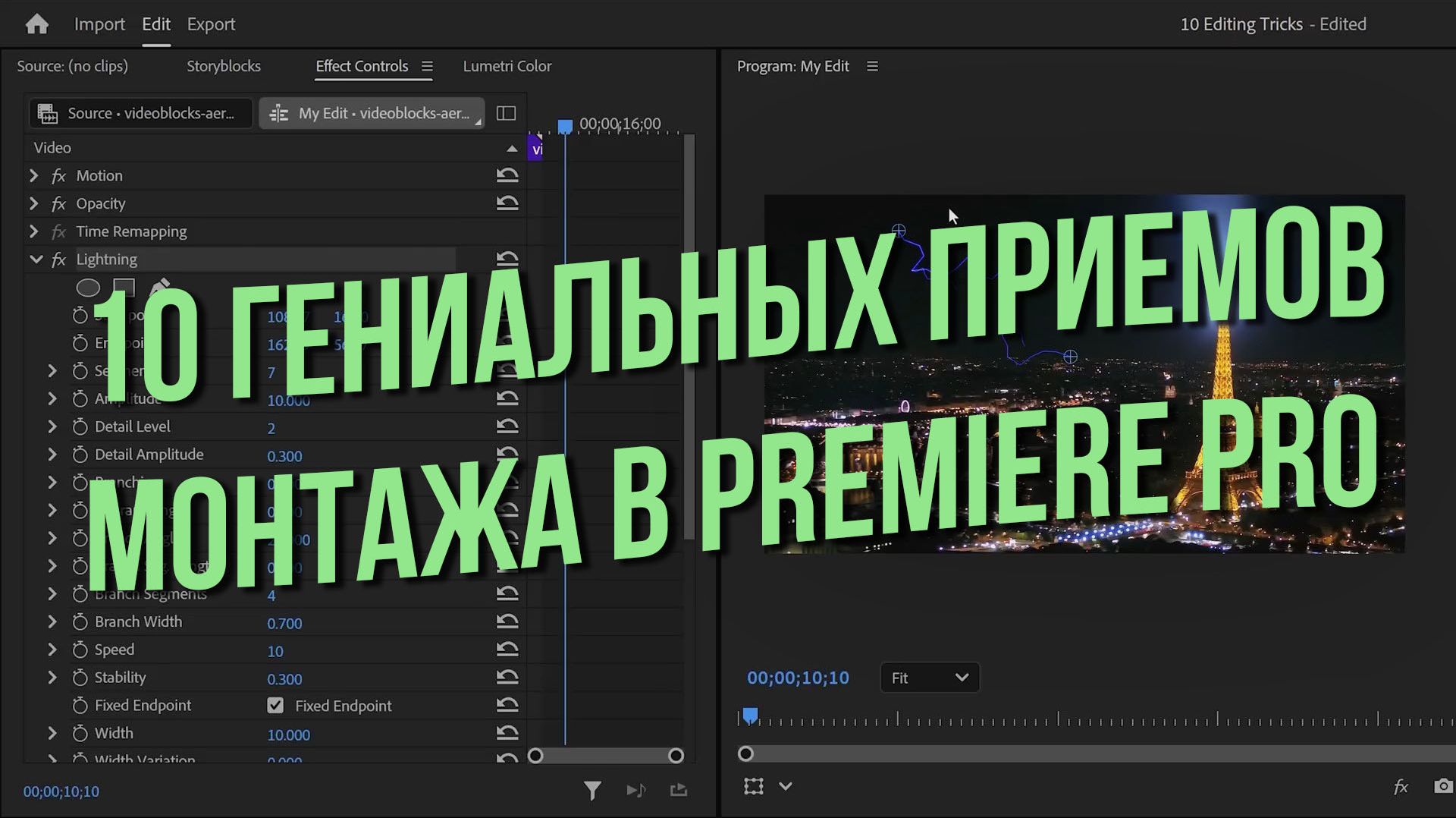10 гениальных приёмов монтажа в Premiere Pro. Оригинальное видео с Ютуб канала Premiere Basics. Перевод сделал искусственный интеллект, монтаж Олег Кириленко