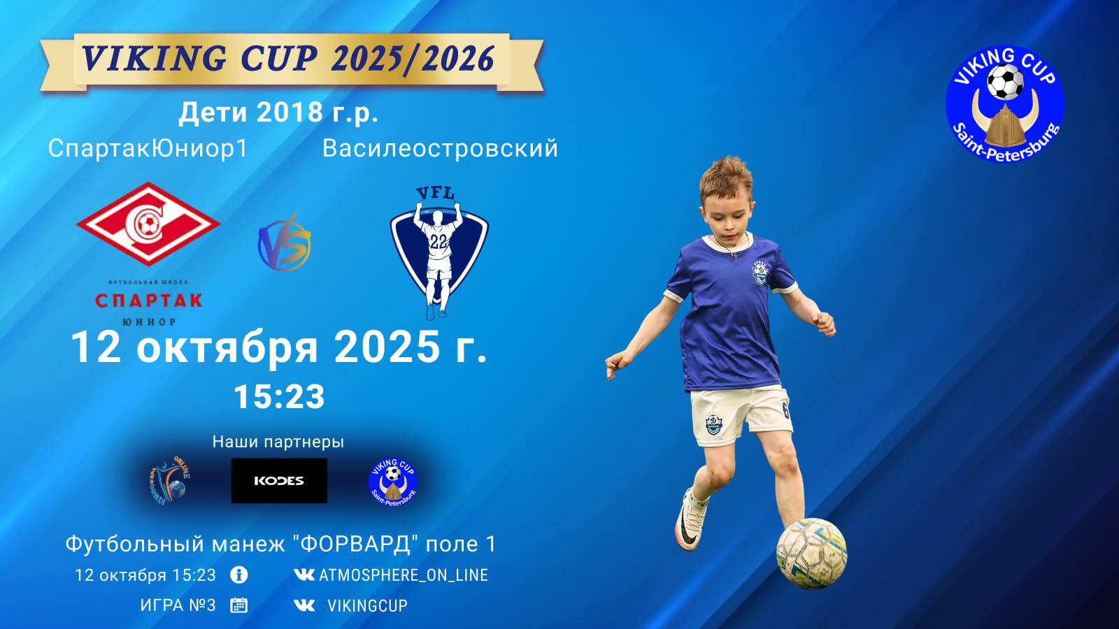 VIKING CUP среди команд 2018 г.р. (U7), Поле 1 12 октября 2025 САНКТ-ПЕТЕРБУРГ, ФЦ "Форвард" ФК "СпартакЮниор1" - ФК "Василеостровский"/VIKING CUP, Игра №3, 12-10-2025 15:23