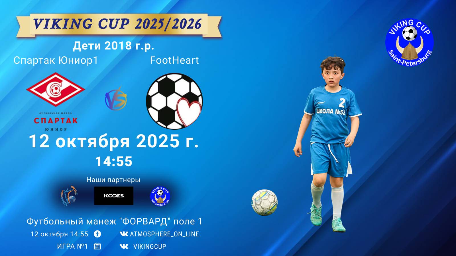 VIKING CUP среди команд 2018 г.р. (U7), Поле 1 12 октября 2025 САНКТ-ПЕТЕРБУРГ, ФЦ "Форвард" ФК "СпартакЮниор1" - ФК "FootHeart"/VIKING CUP, Игра №1, 12-10-2025 14:55