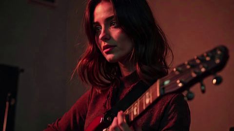 Девушка с электрогитарой, песни про ресторан. Сгенерированное видео