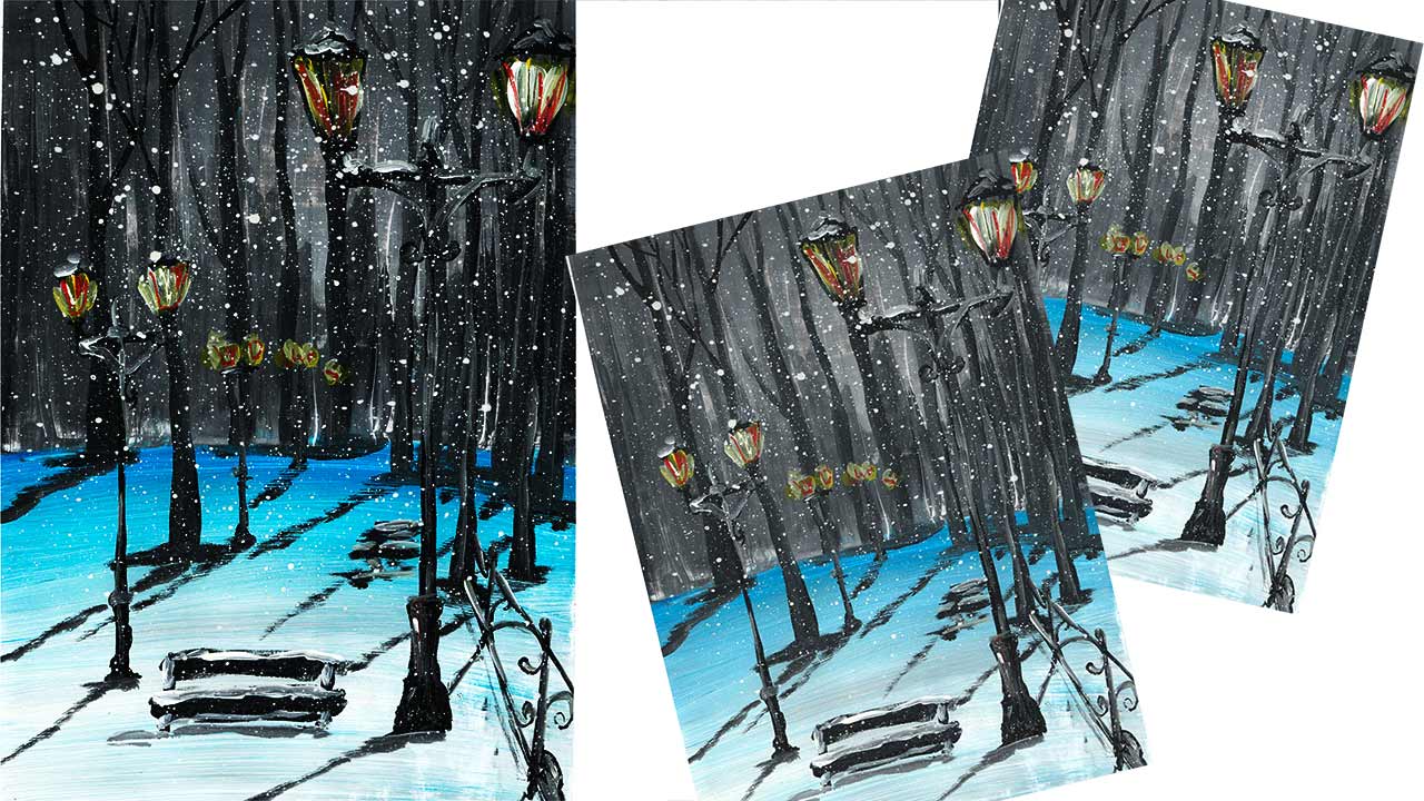 Как нарисовать зиму в городе. Рисуем зимний пейзаж. Нарисуем парк зимой. Правополушарное рисование.