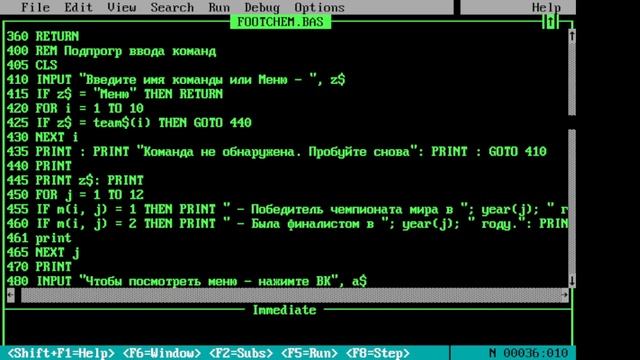 Банк данных по чемпионатам мира по футболу (СУБД +БД) на Бейсике. Программа из книги "Осваиваем микрокомпьютер" (книга 2). Устранены ошибки, внесены улучшения.