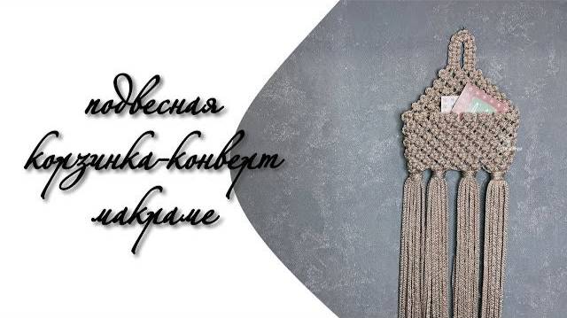Подвесная корзинка конверт из полиэфирного шнура в стиле макраме