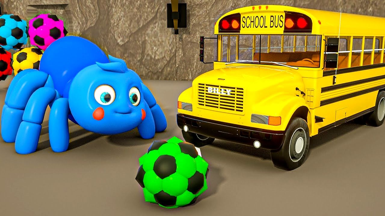 Песенка Колеса на автобусе Разноцветные пауки и разноцветный школьный автобус Песенки для малышей
