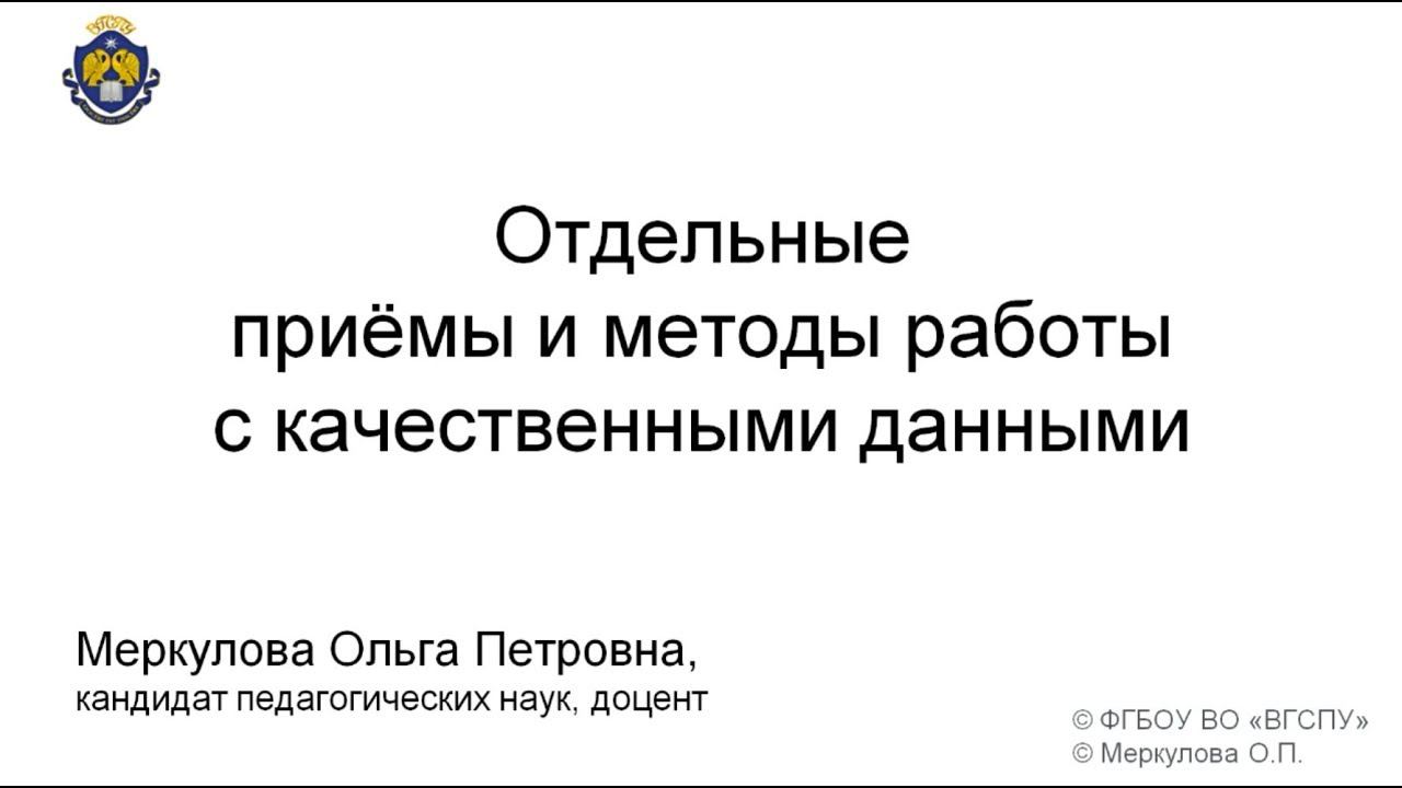 Отдельные приемы и методы работы с качественными данными