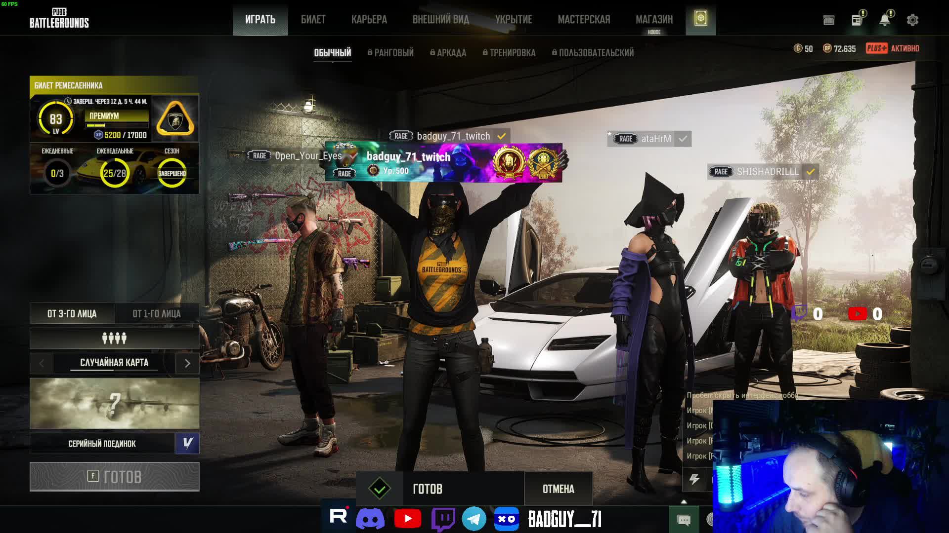 Поддержать стримера: https://www.donationalerts.com/r/badg... Карта для прямого доната: 2200 3005 6657 3711 Канал на Twitch: / badguy_71 Мой телеграм канал: https://t.me/badguy_71 Мой Kick: https://kick.com/badguy-71 Мой VK Play: https://live.vkplay.ru/badguy_71 Всем привет! Зовут Дима, 41 годик, играю в pubg много и с удовольствием. Стримы каждый день. Мой компьютер Процессор Intel Core i5-11400F Видеокарта Palit GeForce RTX 3060 Ti Оперативная память 32 gb