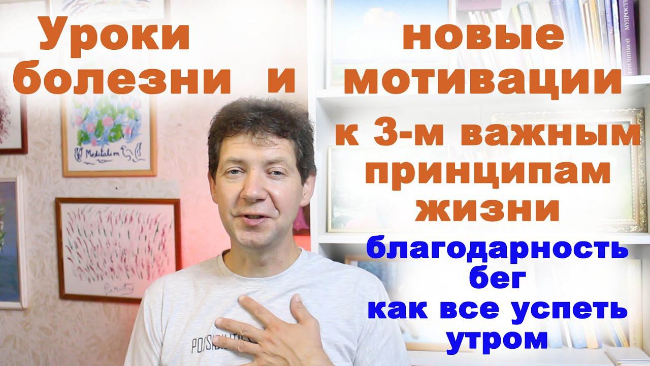 После болезни и страданий с высокой температурой на меня снизошло просветление, и я решил помнить и применять на практике три важных принципа в жизни... Это благодарность за то, что мы здоровы, будет о мотивации регулярно бегать и о дисциплине, как организовать утро... http://volkovdmitriy.ru/tvorchestvo/uroki-bolezni-i-novye-motivacii.html об этом в статье на моем сайте https://ru.srichinmoylibrary.com/ - книги Шри Чинмоя https://knigi.volkovdmitriy.ru/ -мои книги