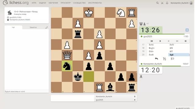 Играю в шахматы на lichess. Партии довольно долгие, поэтому выкладываю по частям.