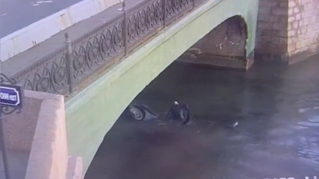 В Санкт-Петербурге автомобиль Citroen сбил пешехода и упал в Обводный канал.