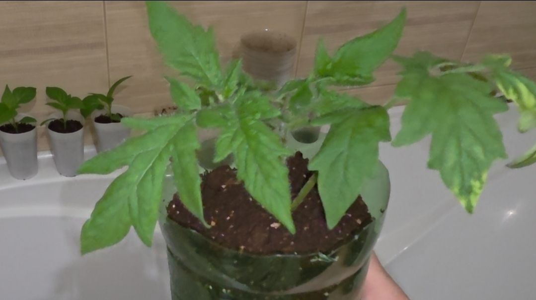 #томат #Ляна #Розовая перевалка в бОльшую ёмкость трёх корней, посеянных для более раннего урожая