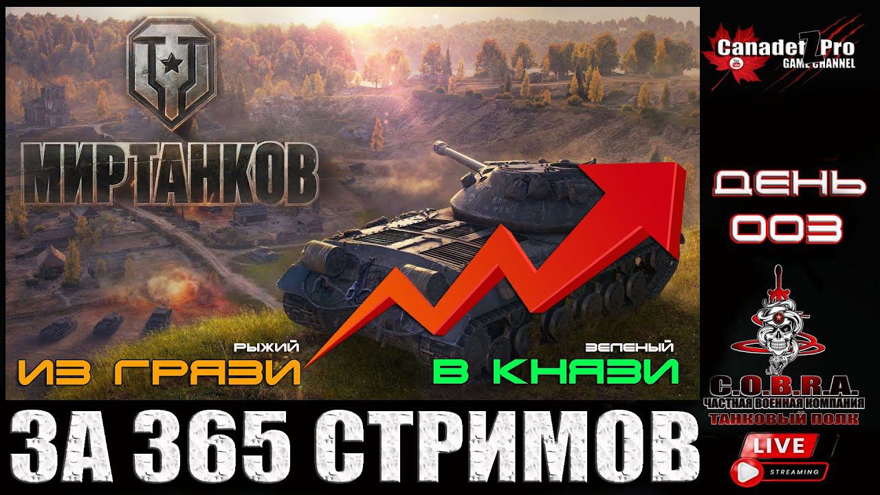 Привет друзья. Продолжим сегодня сражатся за зеленый статус в игре про танки. Много времени упущен, много сделано ошибок, но никогда не поздно все исправить. Сегодня мы сделаем небольшой шажок к игре в лидерах. Ваша поддержка очень важна для меня, потому жду всех! Донат Автору: (https://www.donationalerts.com/r/canadetz_pro) КАРТА МИР: 2200 4501 5712 2368 КИВИ qiwi.com/n/CANADETZ Подписка в ВК : https://vk.com/canadetz_pro TROVO https://trovo.live/Canadetz ТЕЛЕГА https://web.telegram.org/z/#-1617706938 СПОНСОРЫ: СБЕРМЕГА МАРКЕТ Преимущества для подписчиков: Товары от разных продавцов одной доставкой Более 8000 проверенных продавцов География доставки – более 1000 городов Пункты выдачи заказов и постаматы – более 60 000 Реальные отзывы покупателей Сравнение цен и покупка по лучшей Акция "Гарантия лучших цен" Кэшбэк за каждую покупку, которым можно оплатить до 50% стоимости следующих заказов +1% кэшбэка при оплате онлайн Возможность заказать и получить товар в этот же день с функцией “Получить сегодня” Новые акции и суперцены каждую неделю Быстрый вход с помощью Сбер ID без логина и пароля Рассрочка (купите любой товар в рассрочку и без переплат) Быстрый поиск по штрих-коду в мобильном приложении ССЫЛКА : (https://ad.admitad.com/g/hyddu57k0322c15e479afbfd3e99ca/?i=15&subid=0) Will To Live Online (PC) Игра в жанре MMORPG в духе пост-апокалипсиса Продуманная история мира со своими особенностями Большой и открытый мир, наполненный мутантами и различными аномальными зонами Шахты, пещеры и различные подземелья Рейдовые монстры Разветвленная сюжетная линия, благодаря которой игроку предстоит разобраться в происходящем Наличие враждующих фракций и кланов Четыре различных класса персонажей со своими уникальными способностями и экипировкой Наличие кастомизации позволяет вам создать уникального персонажа мужского или женского пола Система развития персонажа, учитывающая навыки владения оружием и способности персонажа ССЫЛКА ЧТО БЫ НАЧАТЬ ИГРАТЬ!(https://trk.mail.ru/c/d4bxk0?mt_sub1=3351057) WORLD OF TANKS Получи свой подарок! https://vk.cc/ceY0K0 WARFACE ПОЛУЧИ СВОИ ПЛЮХИ: ССЫЛКА 1 (https://1l-go.my.games/r/adid/3222208_2015134/pid/274/pof/1/f/3/?_1larg_sub=3351057&utm_medium=affiliate&utm_campaign=3351057&utm_source=da) ССЫЛКА 2 (https://ru.warface.com/promo/choice?_1ld=3222208_2015134_3351057&_1lp=1&utm_medium=affiliate&utm_campaign=3351057&utm_source=da)