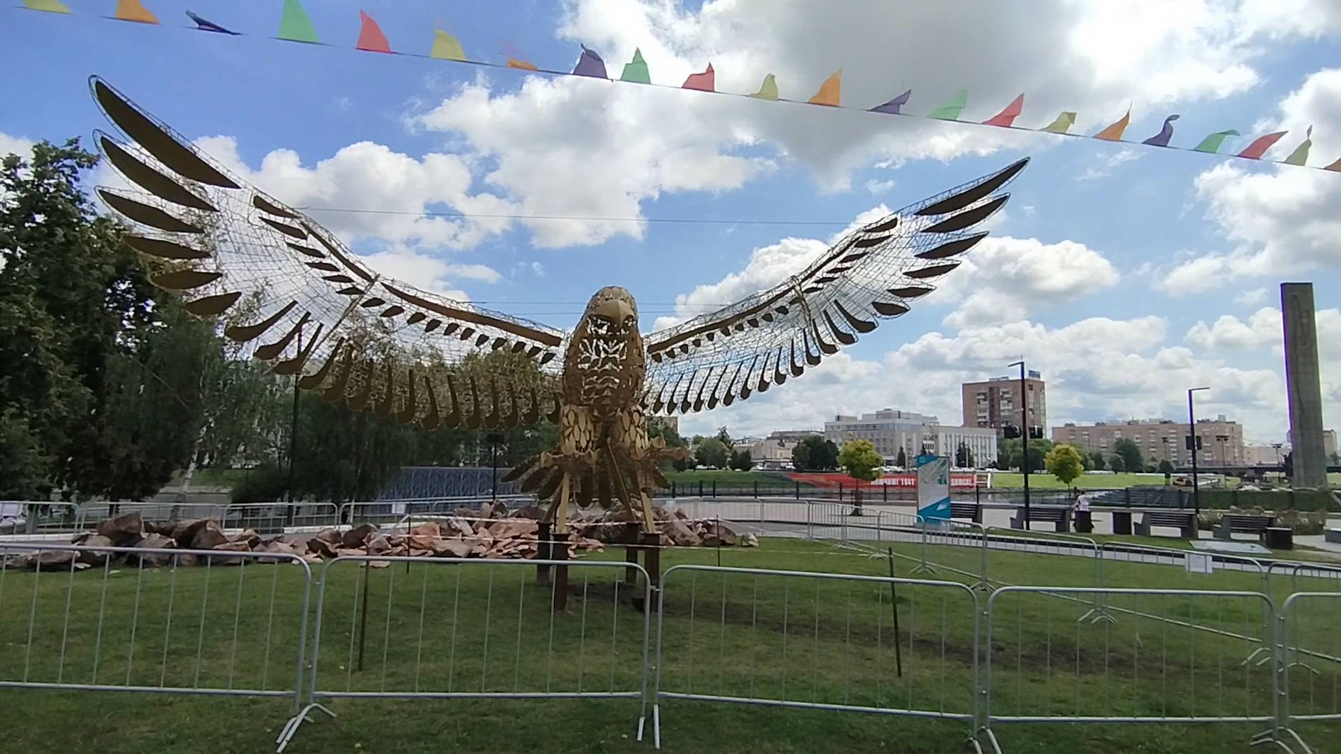 На набережной большая фигура: Птица орёл