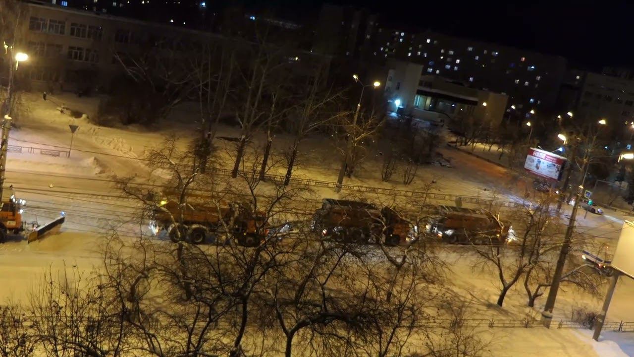 Аш целых 5 машин сразу чистят снег, на улице Нижнего Тагила.... Стоят на перекрёстке, светофор "красный". 12 декабря, примерно 21.00 район остановки "ул. Островского"