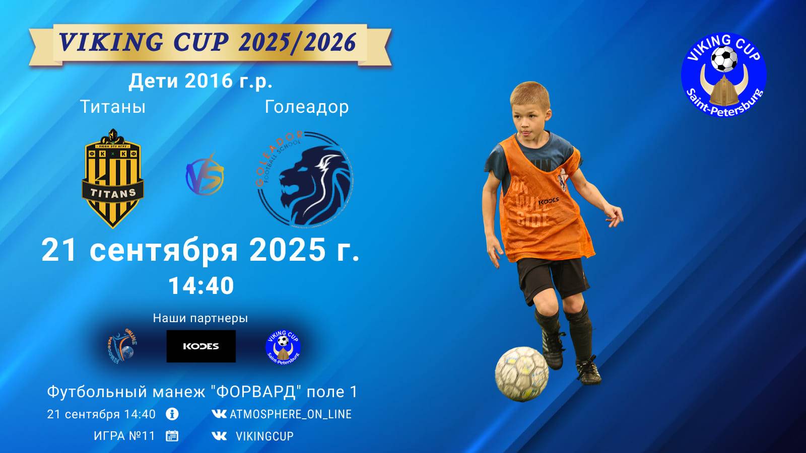 VIKING CUP среди команд 2016 г.р. (U9), Поле 1 21 сентября 2025 САНКТ-ПЕТЕРБУРГ, ФЦ "Форвард" ФК "Титаны" - ФК "Голеадор"/VIKING CUP, Игра №11, 21-09-2025 14:40