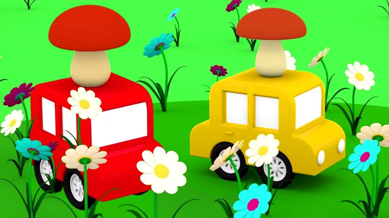3D мультики про машинки. 4 машинки собирают грибы