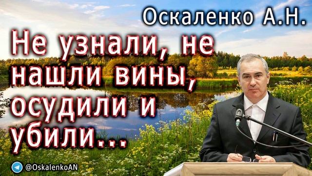Оскаленко Александр Николаевич. Не узнали, не нашли вины, осудили и убили... Проповедь. ______________ ? Мужи братия, дети рода Авраамова, и боящиеся Бога между вами! вам послано слово спасения сего. Ибо жители Иерусалима и начальники их, не узнав Его и осудив, исполнили слова пророческие читаемые каждую субботу, и, не найдя в Нем никакой вины, достойной смерти, просили Пилата убить Его. Когда же исполнили все написанное о Нем, то, сняв с древа, положили Его во гроб. Но Бог воскресил Его из мертвых. (Деяния Апостолов 13: 26-30) ___________ Проповеди этого автора в канале Telegram: https://t.me/OskalenkoAN ___________ Плейлист с проповедями Оскаленко А.Н. на этом канале: https://rutube.ru/plst/62680 ___________ Плейлист с проповедями этого автора в канале YouTube: https://www.youtube.com/playlist?list=PLgv1dpwW8c8D1qYzQQSj8DTLAOX2Dlkv5 ___________ Альбом с проповедями этого автора на Яндекс.Дзен: https://zen.yandex.ru/suite/968c15e6-6851-4d75-a58d-e70d9fcf7514