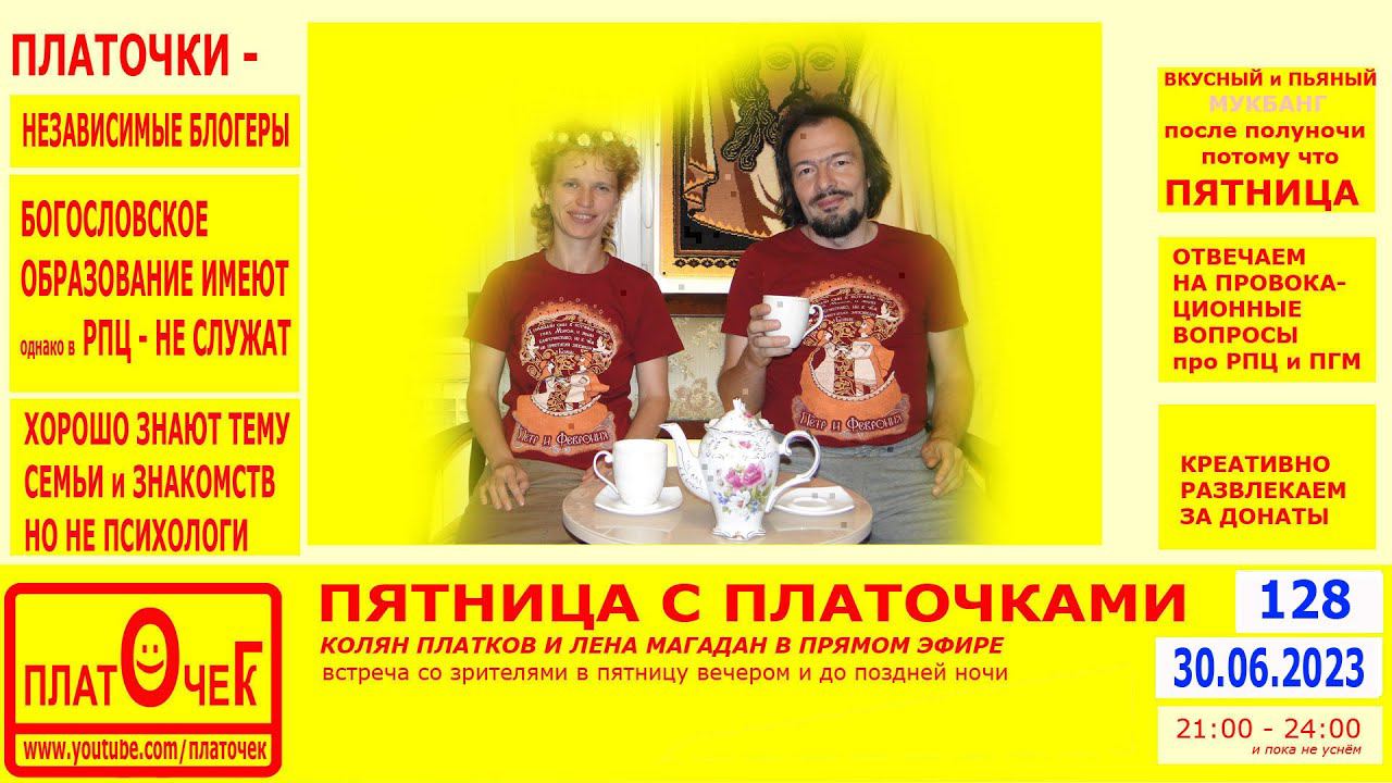 Говорим обо всём, расслабляемся, выполняем прикольные задания от зрителей за донат, отвечаем на провокационные вопросы про РПЦ и ПГМ (частное мнение светских людей с Богословским образованием) по теме "церковь и общество", "религия" и "религиозные заморочки". Весело проводим пятничный вечер. #Пятница #Развлекаемся #НочнойЭфир #кринжовые #фрики Донат: https://donationalerts.com/r/platochekg Наш ВК: https://vk.com/kolyanplatkov Дзен: https://zen.yandex.ru/platochek Твич: https://www.twitch.tv/platocheg Трово: https://trovo.live/platocheg Остальные: https://taplink.cc/platochegk