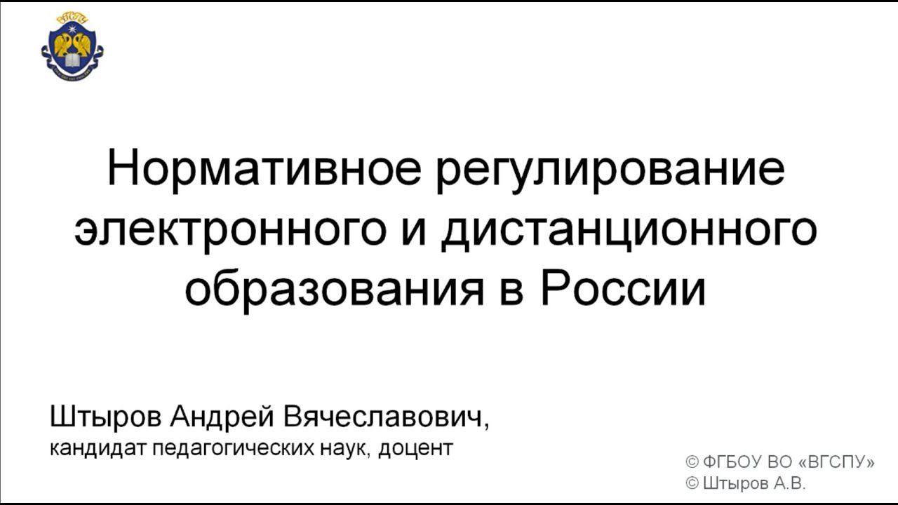 Нормативное регулирование ЭО и ДОТ в РФ