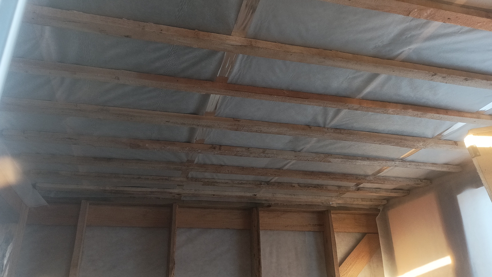 19 серия. Утепление потолка в каркасной бане и немного о кроликах.