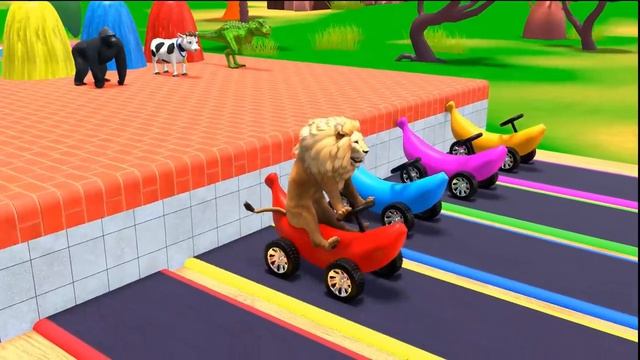Long Slide Game With Cow Elephant Gorilla Hippopotamus Tiger - 3d Animal Game - Funny 3d Animals