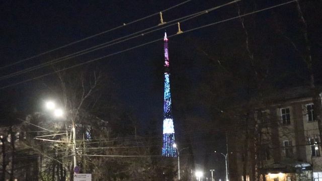Вид на нижегородскую телебашню в ночной подсветке с проспекта Гагарина. Среда 11 марта 2026 г.