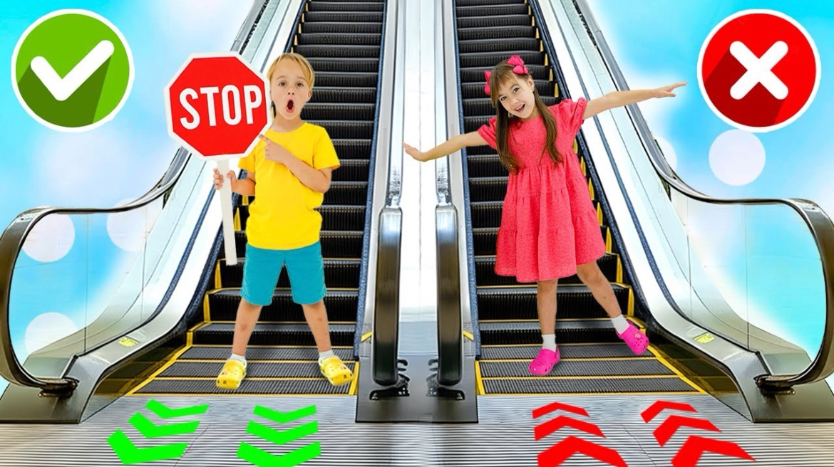 Дети изучают правила безопасности в торговом центре