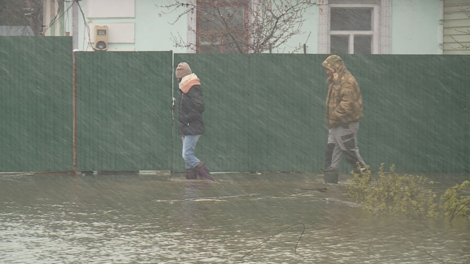 Тающий снег и прошедшие дожди топят частный сектор в поселке Мирный. После ремонта дороги здесь не просто лужи, а река. Вода затопила участки и дома.