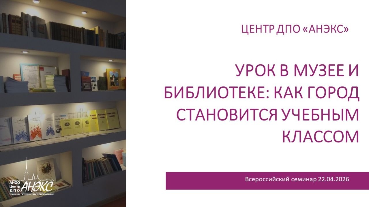 Как сделать так, чтобы ученик не просто прочитал параграф, а прожил учебный материал? Как превратить город из фона в соавтора урока? На вебинаре мы разберем, как вывести обучение за пределы класса, используя ресурсы музеев и библиотек — бесплатные, доступные и мощные педагогические инструменты. Вы получите готовые методики, которые можно применить уже на следующей неделе. Ведущие: Милевская Наталия Ивановна, доцент кафедры педагогики и методики начального образования факультета дошкольного и начального образования Томского государственного педагогического университета, кандидат филологических наук Секции: - Технология «урок в музее» - Литературное краеведение для дошкольников и учеников начальной школы Что вас ждет: Цель: повышение профессиональных компетенций педагогических кадров в области организации образовательного процесса с использованием ресурсов городской культурной среды (музеев и библиотек). Ключевые вопросы семинара: «Лучше один раз увидеть, чем сто раз услышать» — как работает закон восприятия и как использовать его в образовательном процессе. «Я поведу тебя в музей» — от виртуальной экскурсии к реальной: виды музеев, маршруты, литературные герои на карте города. «Библиотека — это открытый стол идей» — как превратить тихое место в пространство живого урока.