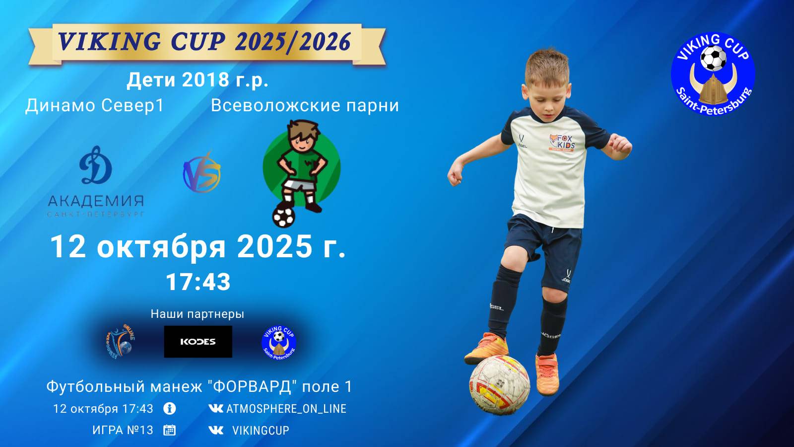 VIKING CUP среди команд 2018 г.р. (U7), Поле 1 12 октября 2025 САНКТ-ПЕТЕРБУРГ, ФЦ "Форвард" ФК "ДинамоСевер1" - ФК "Всеволожские парни"/VIKING CUP, Игра №13, 12-10-2025 17:43