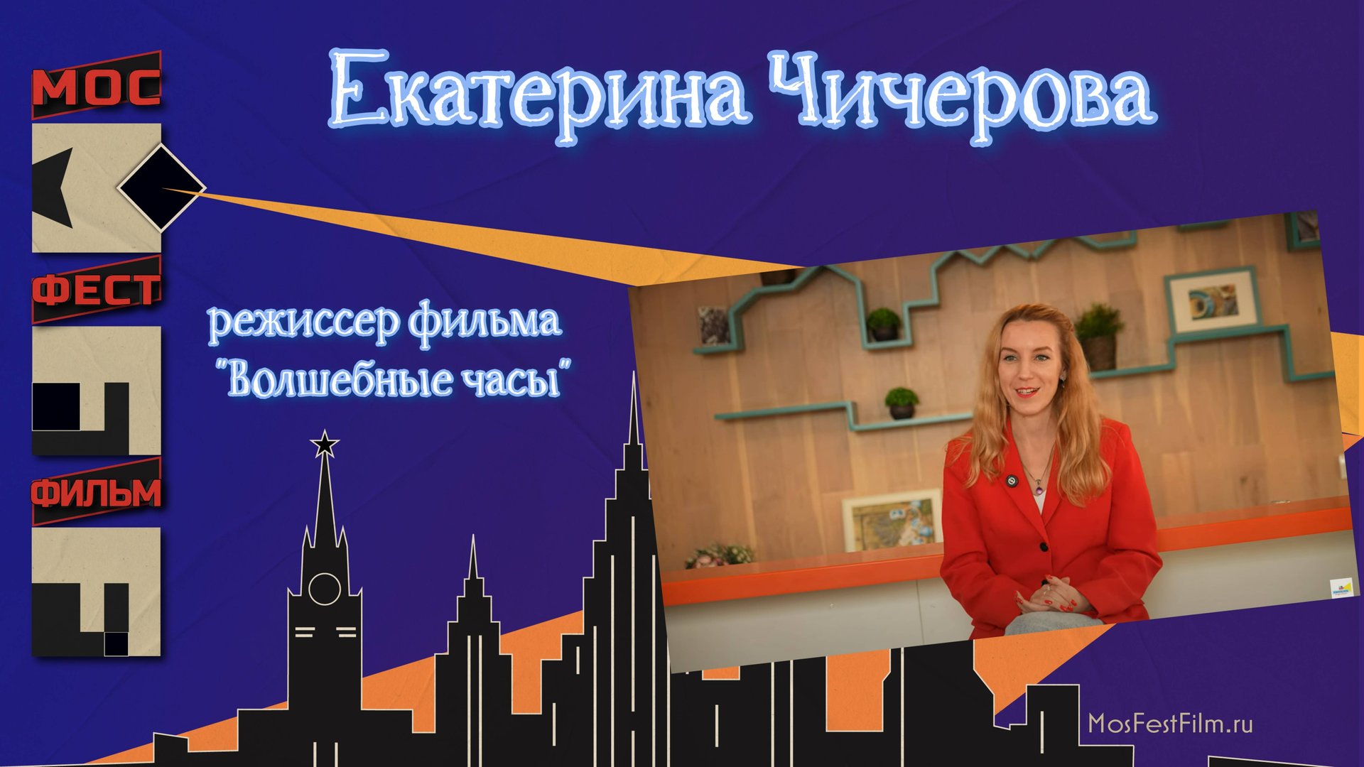 Екатерина Чичерова, режиссер фильма "Волшебные часы", на кинофестивале МосФестФильм 2025 Екатерина Чичерова, автор сценария, режиссёр и продюсер фильма "Волшебные часы", представляет свою работу "Волшебные часы" - это фильм о парне Ване, который постоянно опаздывает и мечтает избавиться от этой проблемы, приобретя волшебные часы. Для Екатерины тема времени очень важна. Идея фильма возникла из личного опыта, когда она работала на работе с пропускным режимом и постоянно опаздывала на автобус. "Волшебные часы" - четвёртый короткометражный фильм Екатерины, но первый в жанре волшебной комедии. До этого она снимала драмы. Екатерина училась во ВГИКе в мастерской Анны Новиковой. После окончания учебы она сняла короткометражный фильм "Подарок". Идея "Волшебных часов" пришла к ней на старый Новый год, когда хотелось чуда. Она отметила, что это новый для неё формат с волшебством и необычными героями. Ранее она отправляла свои работы на фестивали хаотично, но с "Волшебными часами" обратилась к профессионалам для продвижения и стала более тщательно выбирать фестивали. Ожидания от фестиваля у Екатерины самые смелые: она надеется на тёплую реакцию зрителей, вопросы и награду, так как считает фильм качественным, интересным и хорошо снятым.