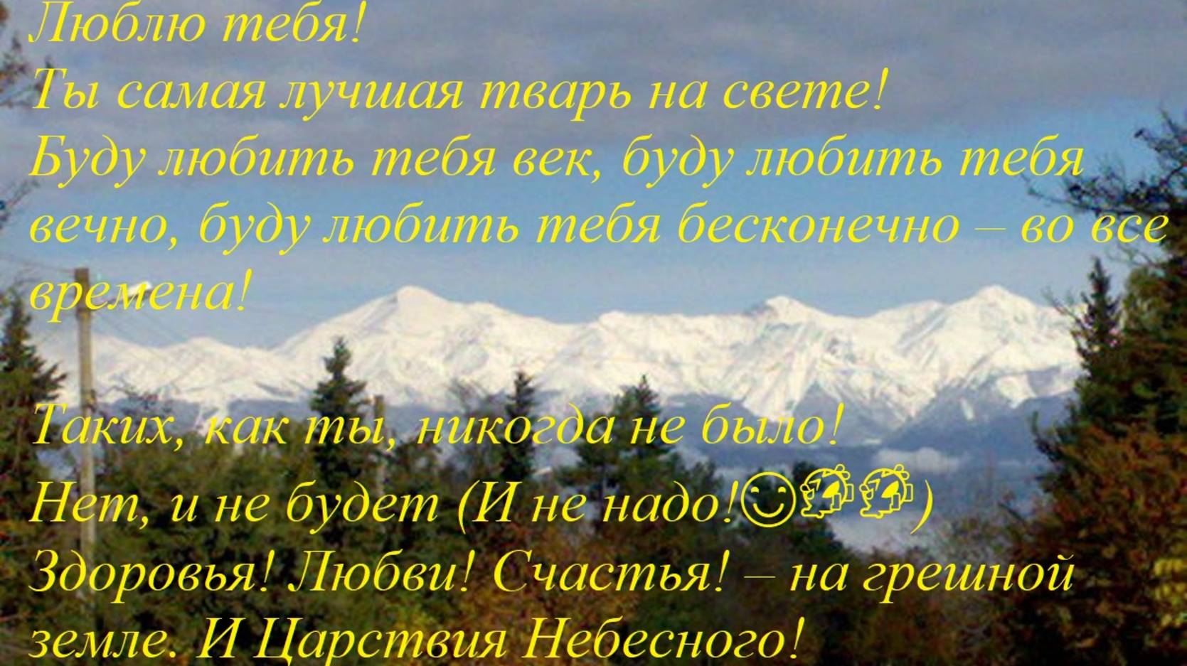 С Днем Рождения! - лучшее поздравление. 😊🤣🤣 Люблю тебя! Ты самая лучшая тварь на свете! Буду любить тебя век, буду любить тебя вечно, буду любить тебя бесконечно – во все времена! Таких, как ты, никогда не было! Нет, и не будет! (И не надо!😊🤣🤣) Здоровья! Любви! Счастья! – на грешной земле. И Царствия Небесного! Я и там тебя найду, если попаду… С Днем Рождения!