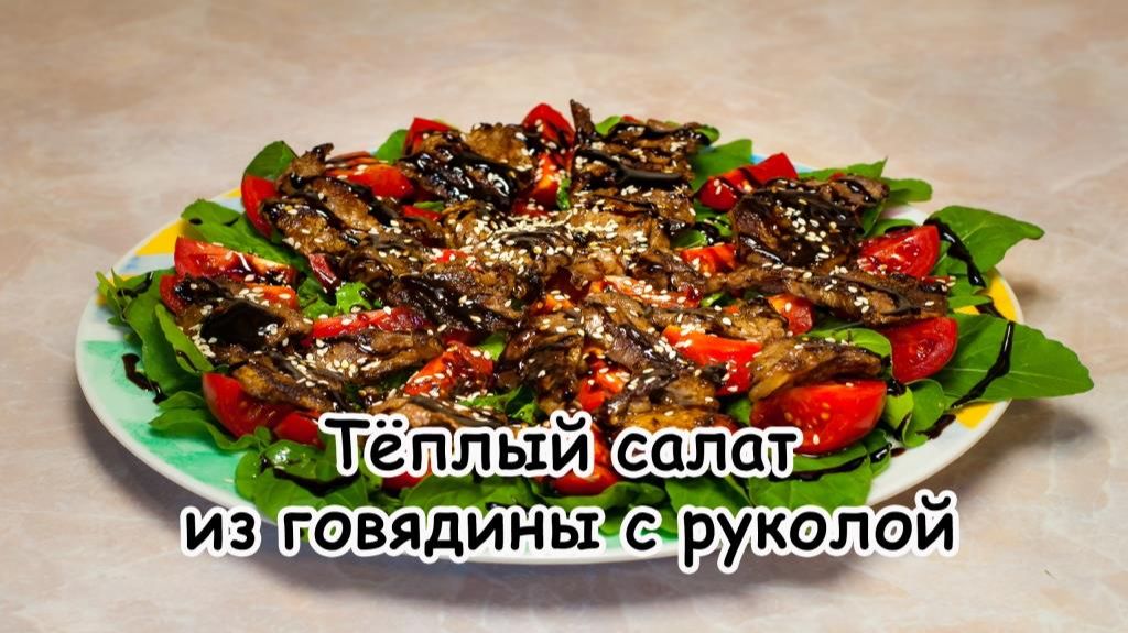 Тёплый салат из говядины с руколой